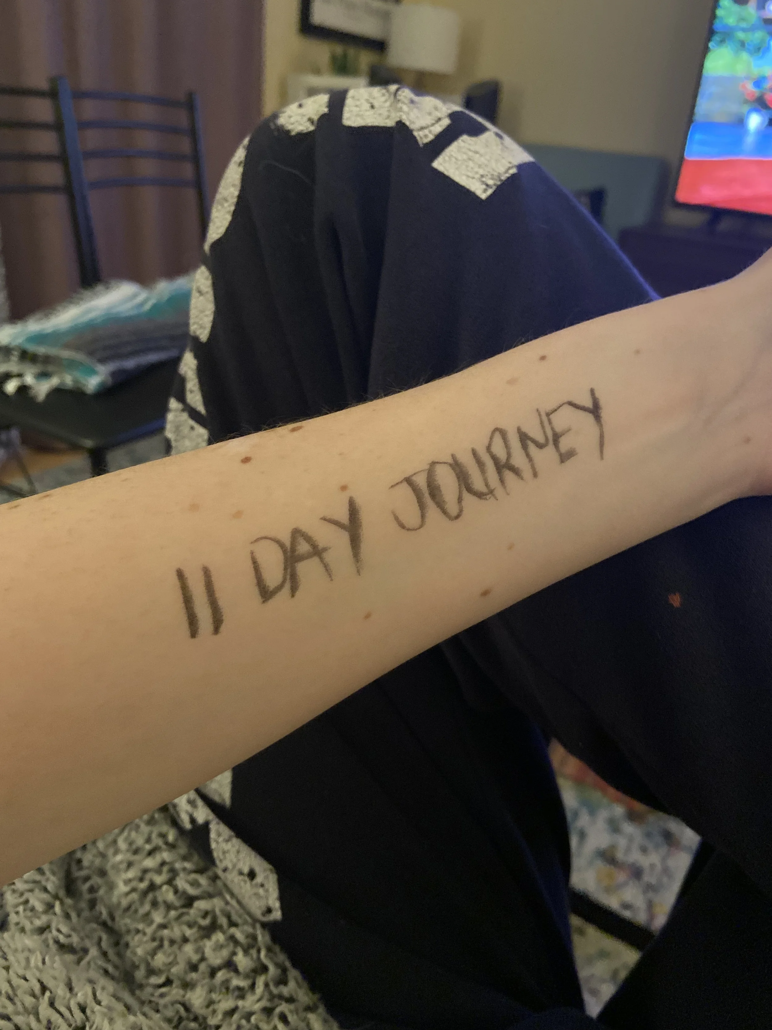 It was difficult to have faith in moments because there were voices trying to convince me to not dream big (no one in CWU faculty). To keep my mindset strong, I wrote “11 day journey” on my fridge, and occasionally even on myself, reminding me not to let a poor attitude, negative thinking, or lack of faith turn an 11-day journey into 40 years (as in Exodus).